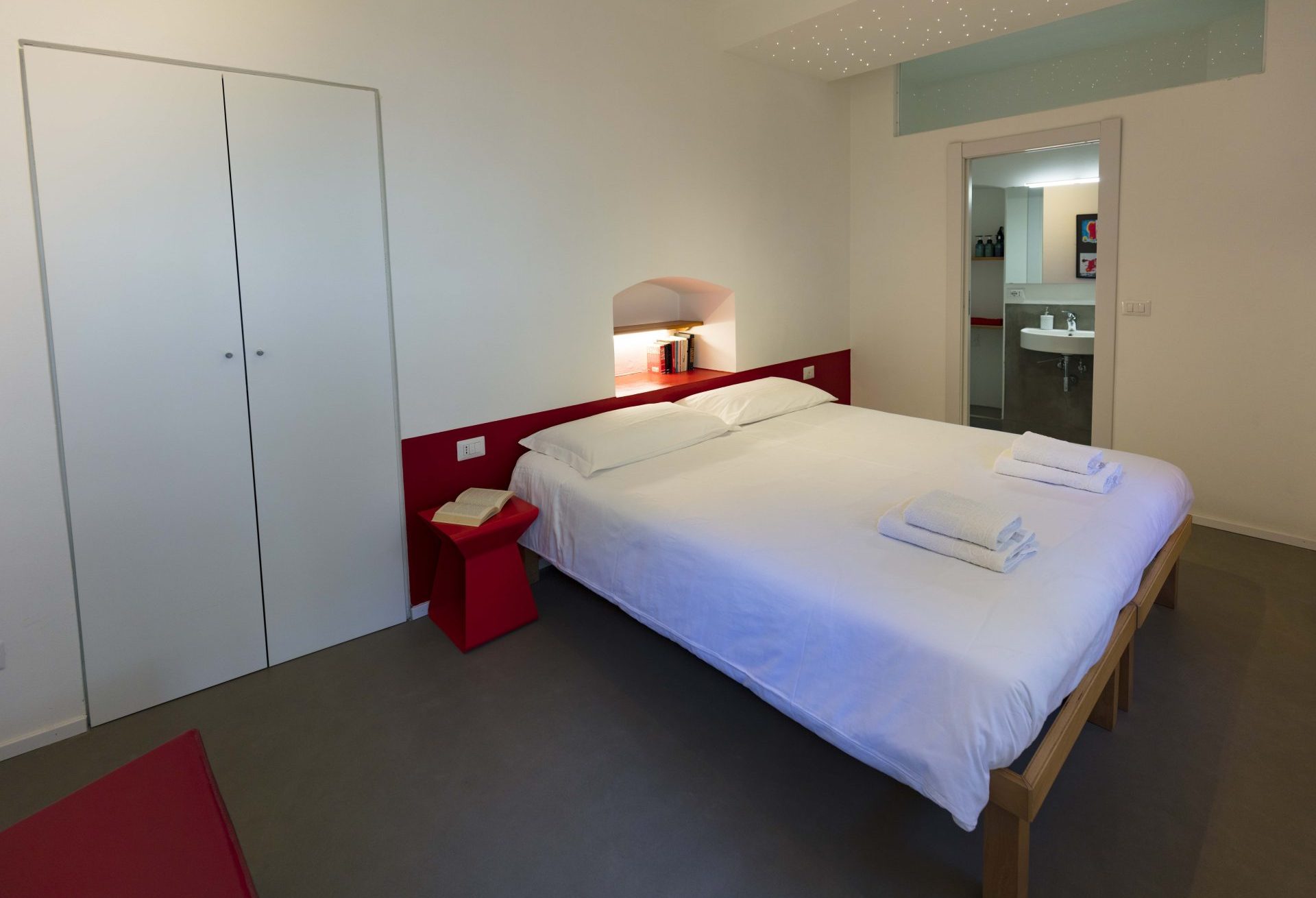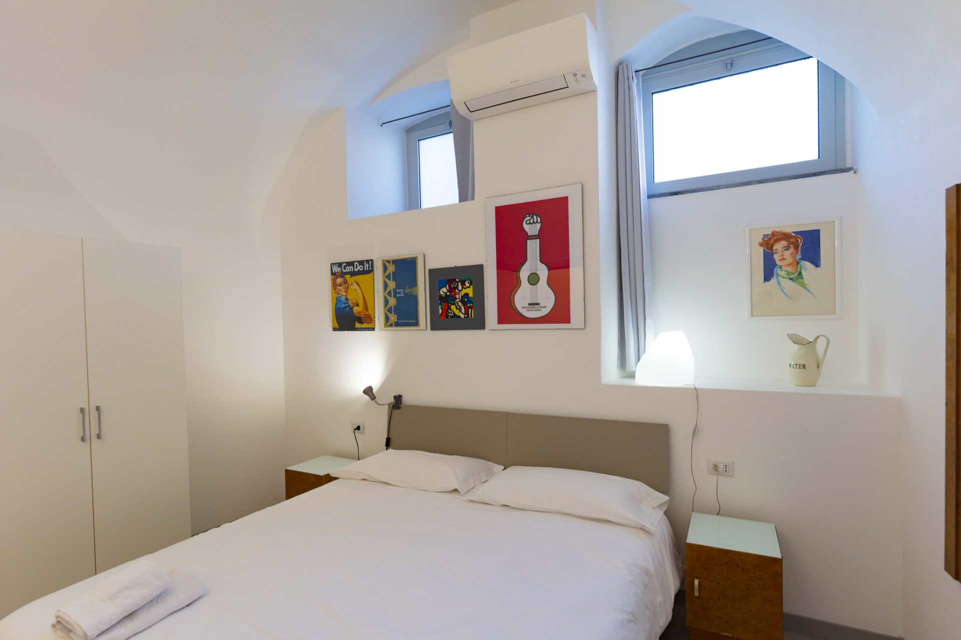 Stanza con letto matrimoniale (o due letti singoli) con caratteristici soffitti a volta e bagno con doccia privato.